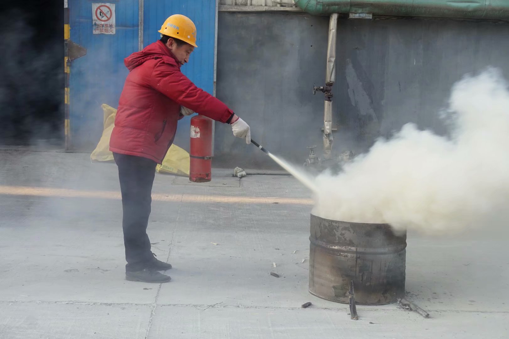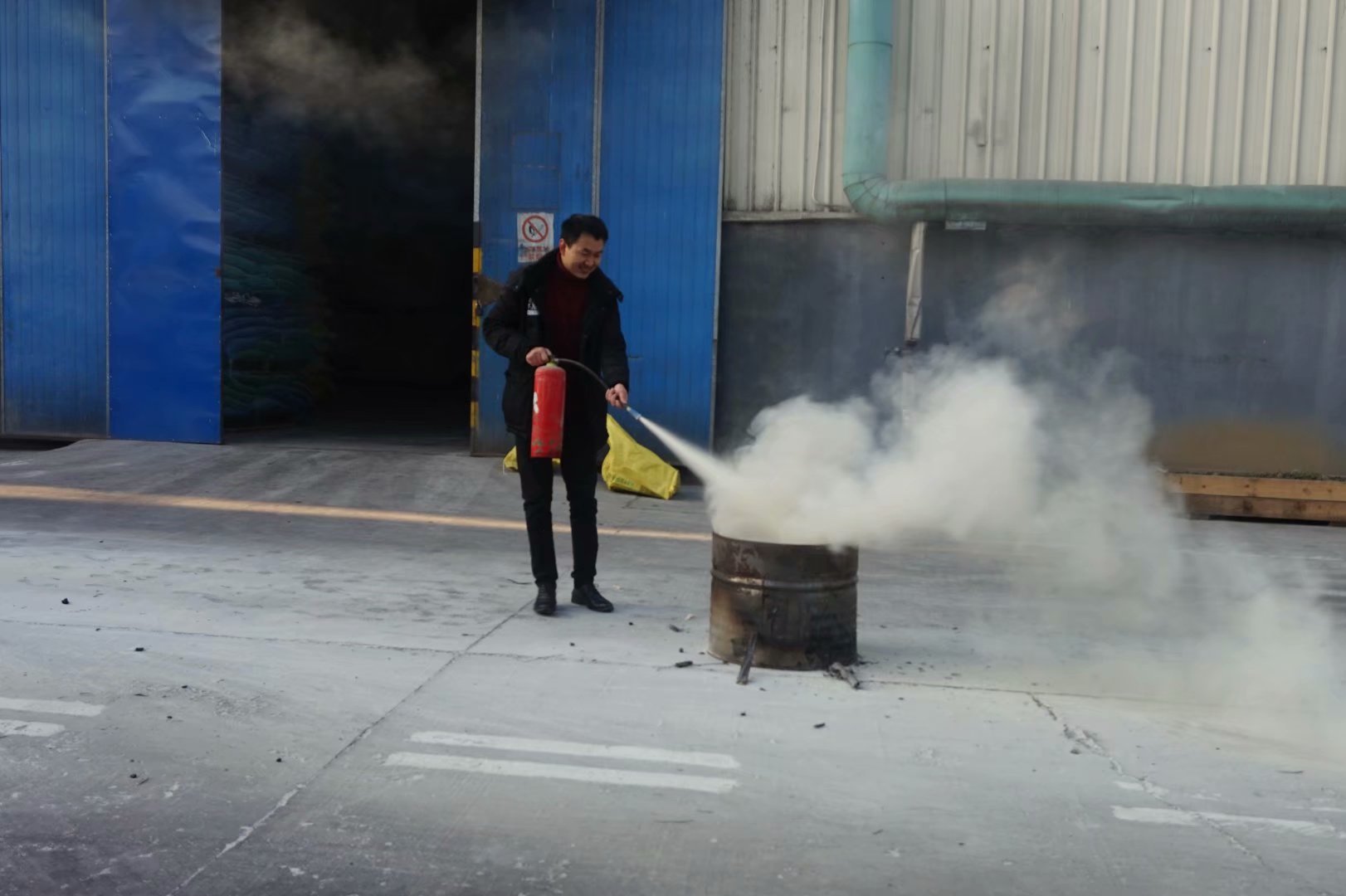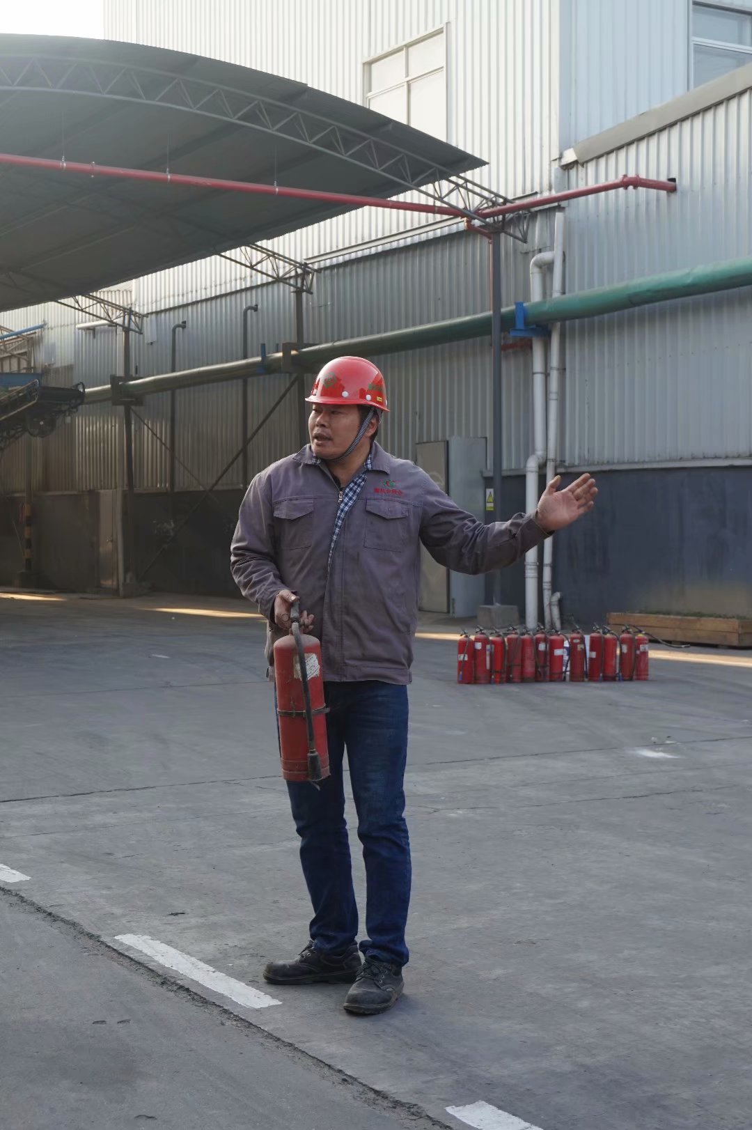 隨后,由工程部王贊國為全廠區人員講解滅火器的使用方法(干粉滅火器):