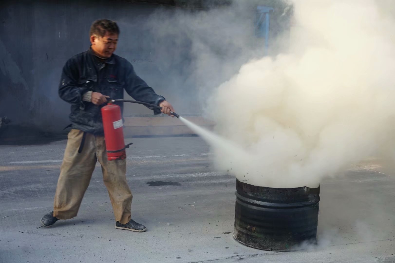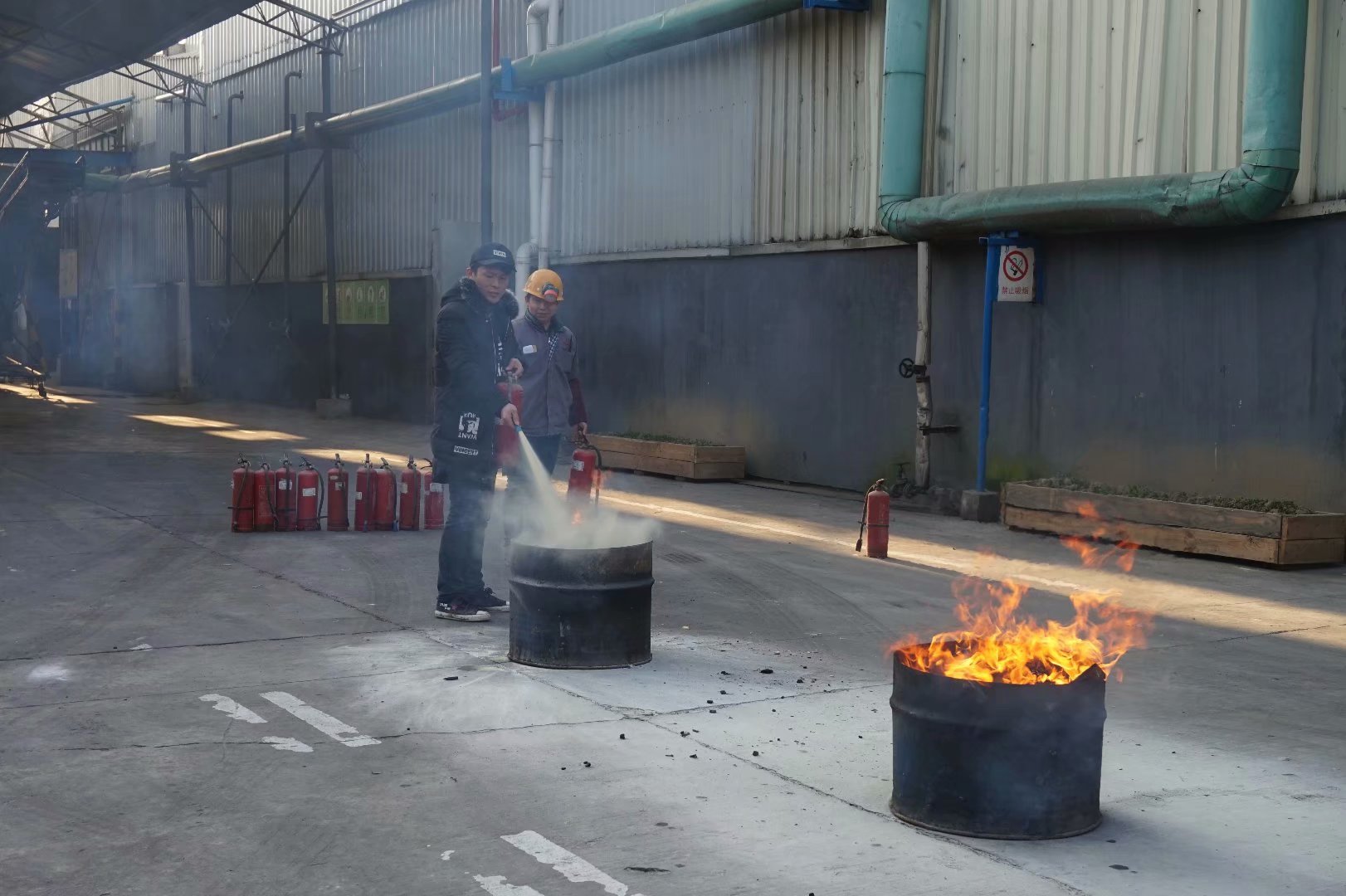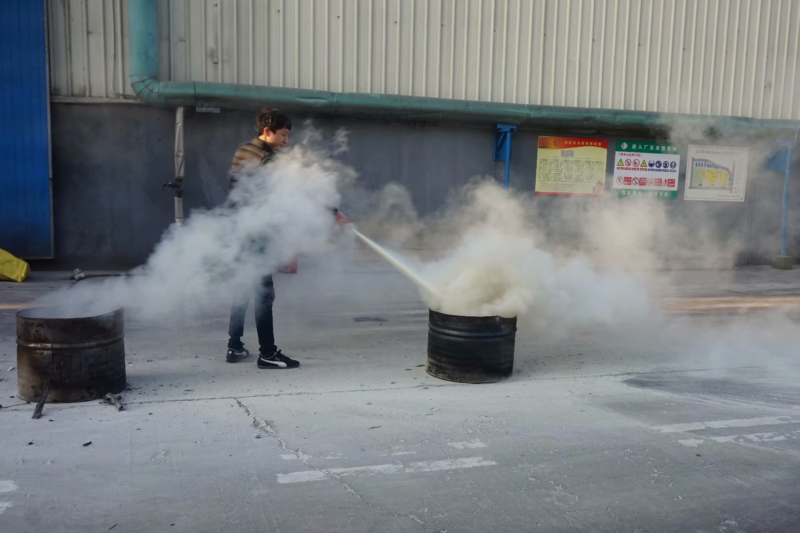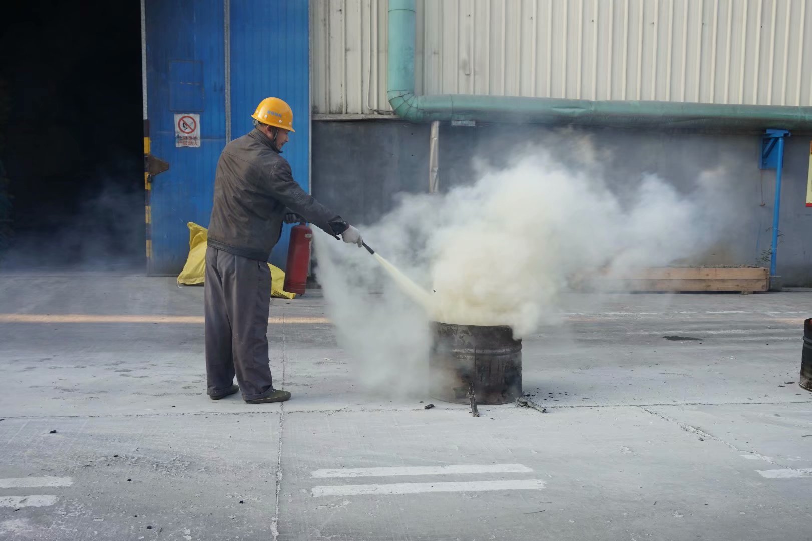 隨后,由工程部王贊國為全廠區人員講解滅火器的使用方法(干粉滅火器):