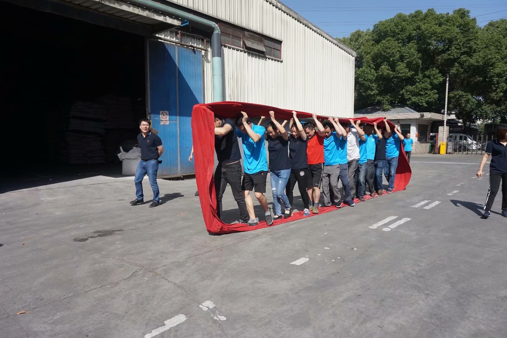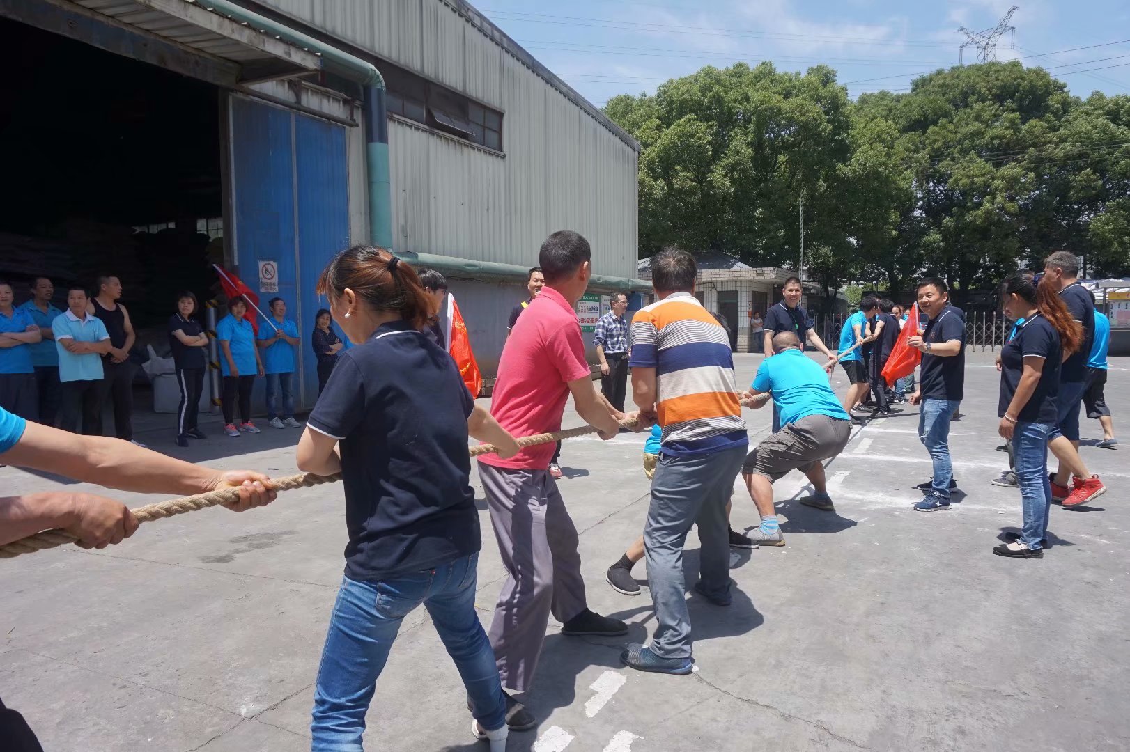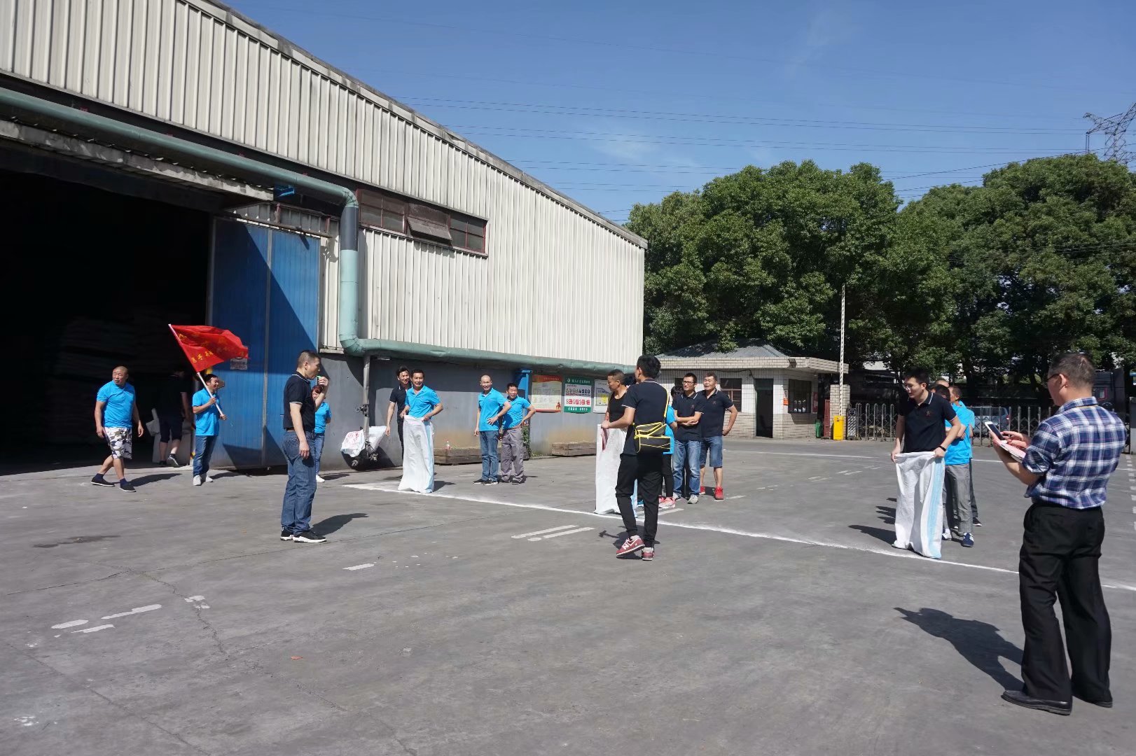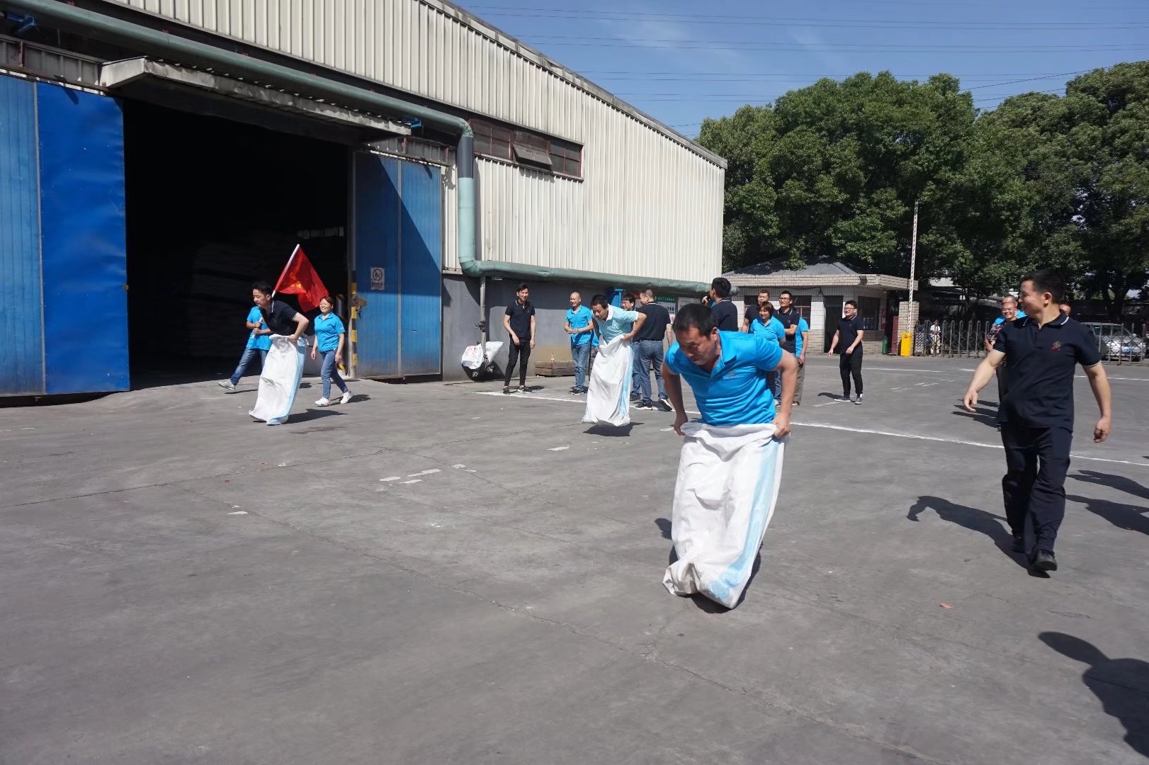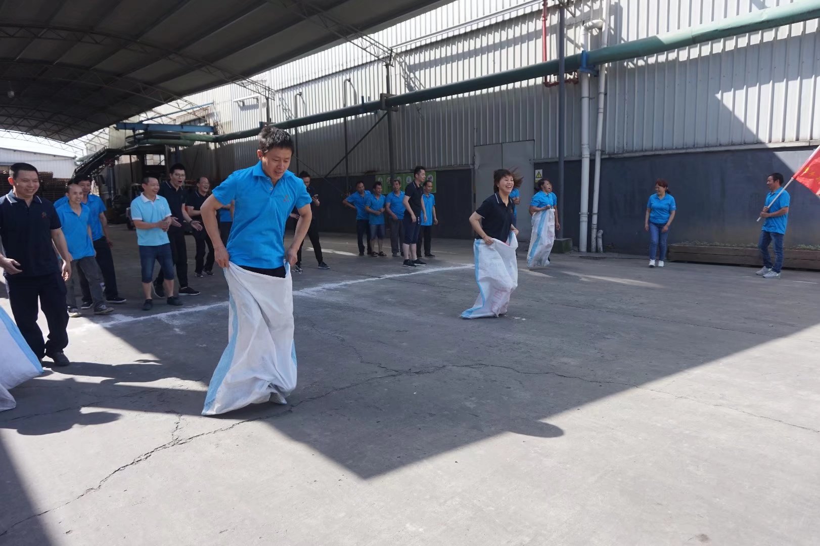 本屆運動會賽期半天,公司員工及管理人員組成了6支參賽隊伍,共一百多名員工及管理人員共同參與財源滾滾、袋鼠接力跳、叉車技能比拼、吃過大比拼及拔河比賽等5個團體比賽。