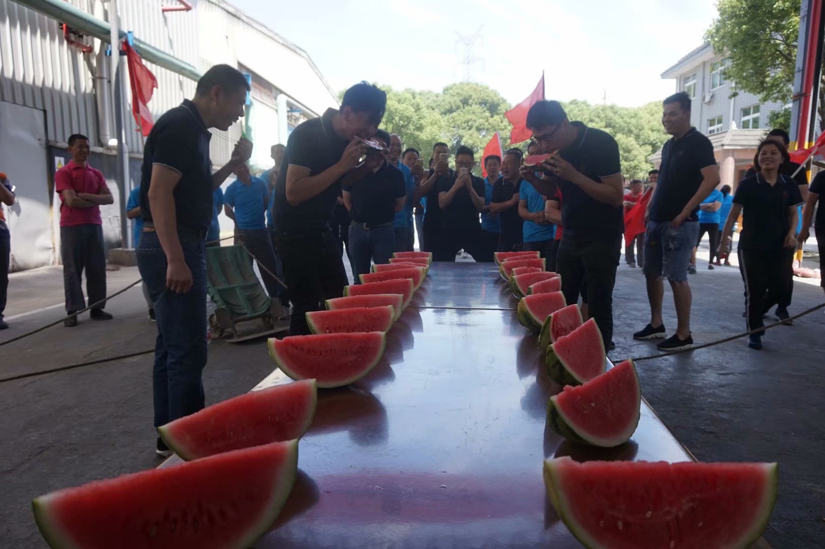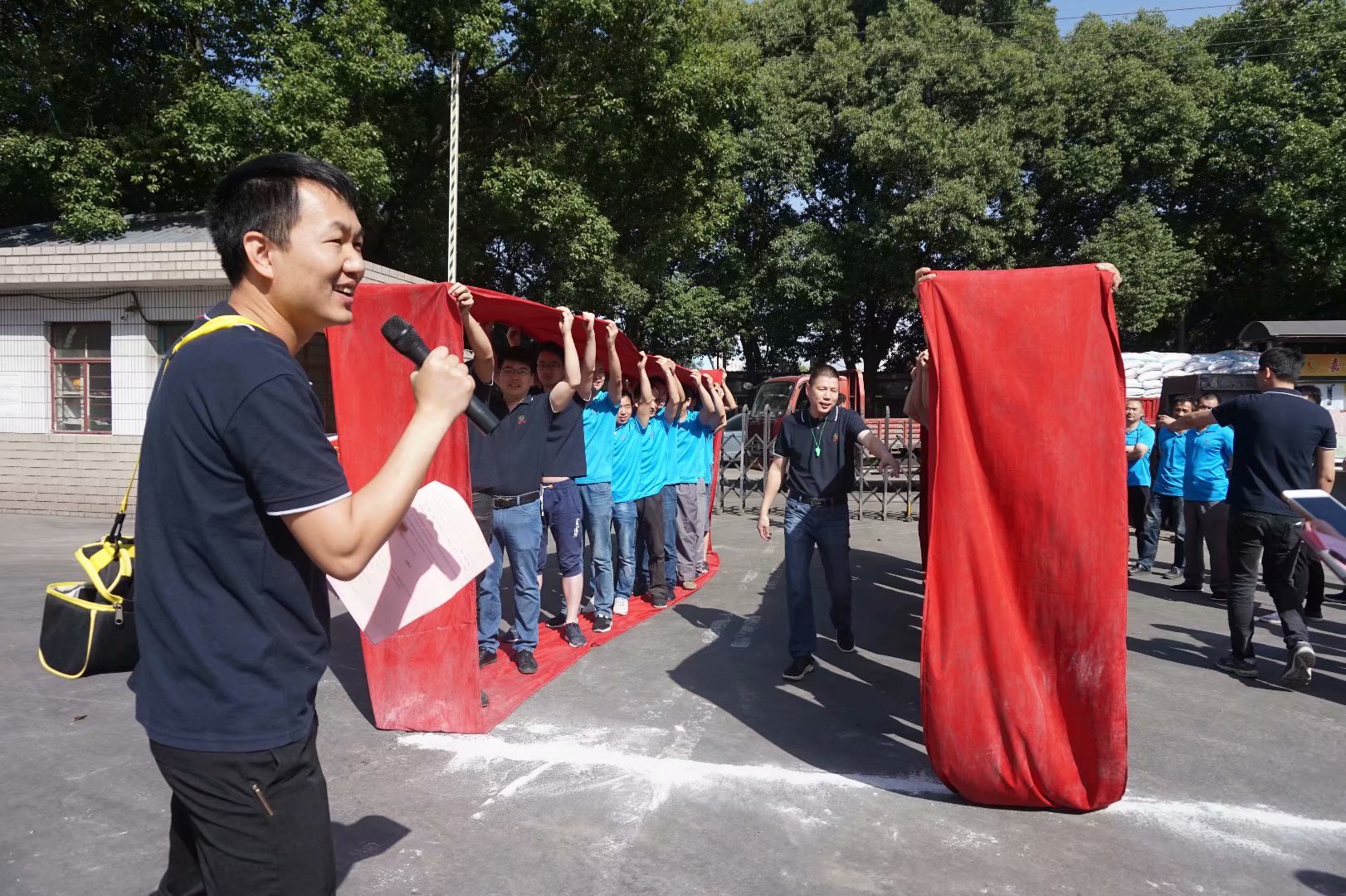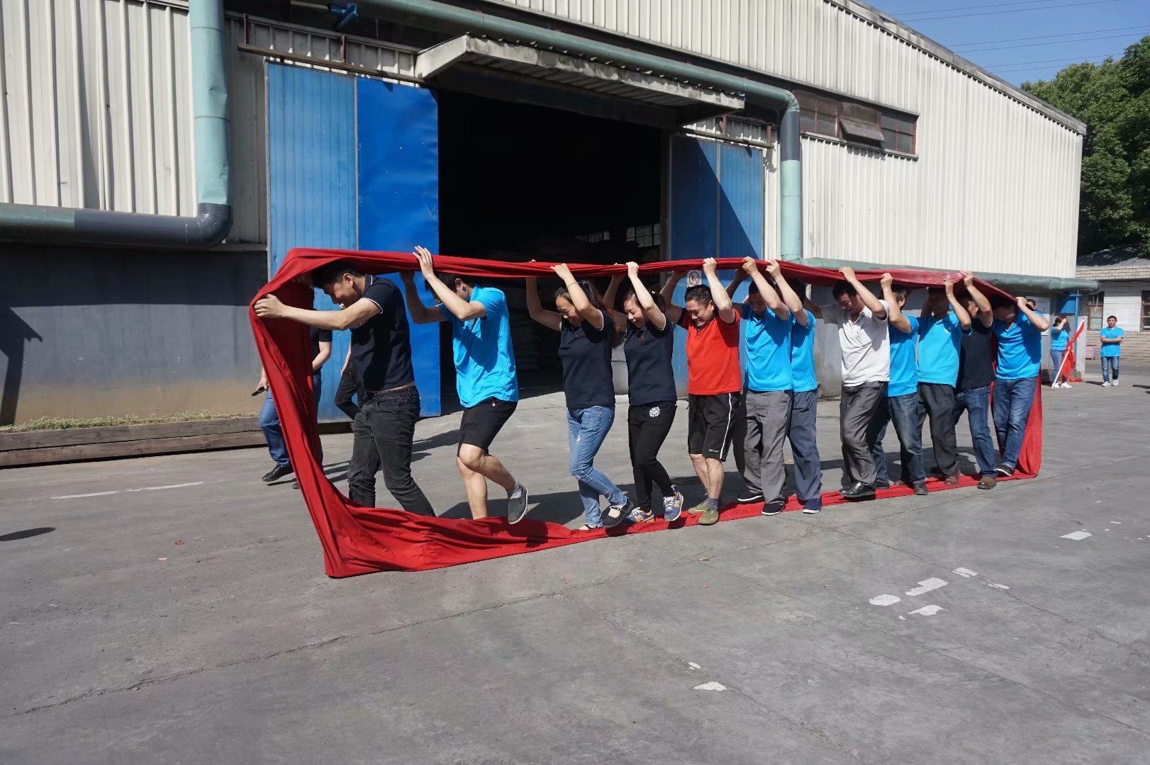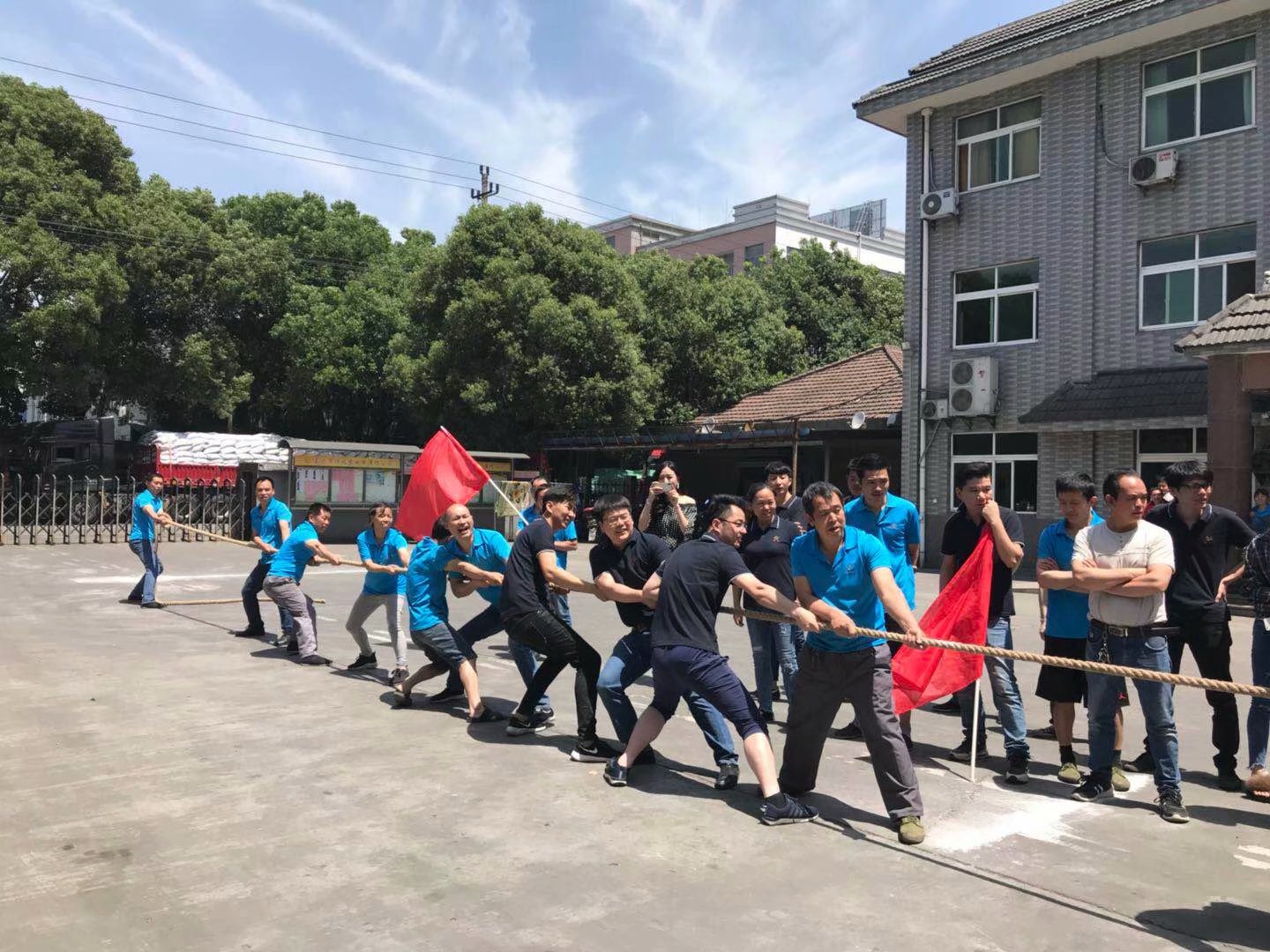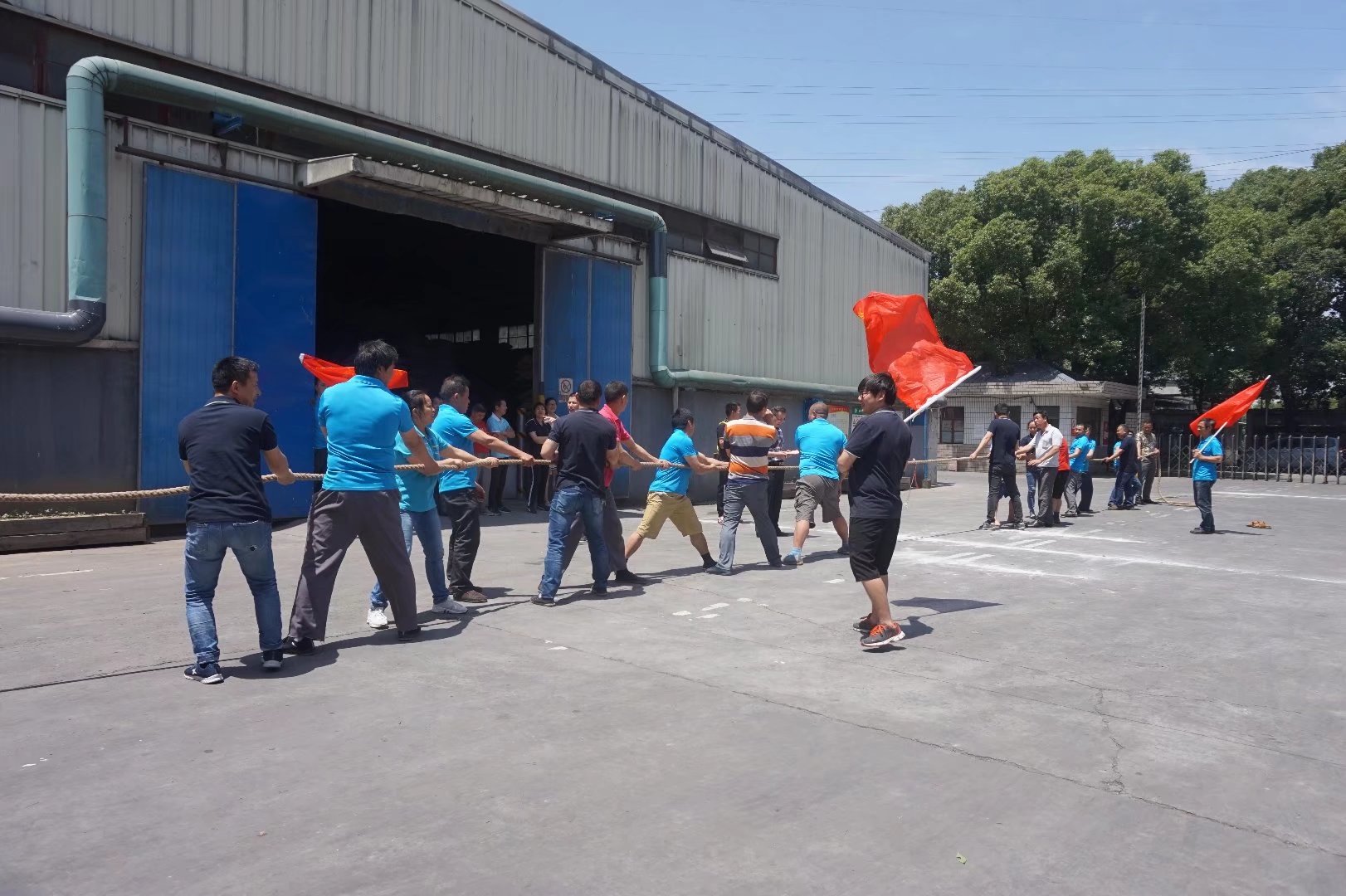 本屆運動會賽期半天,公司員工及管理人員組成了6支參賽隊伍,共一百多名員工及管理人員共同參與財源滾滾、袋鼠接力跳、叉車技能比拼、吃過大比拼及拔河比賽等5個團體比賽。