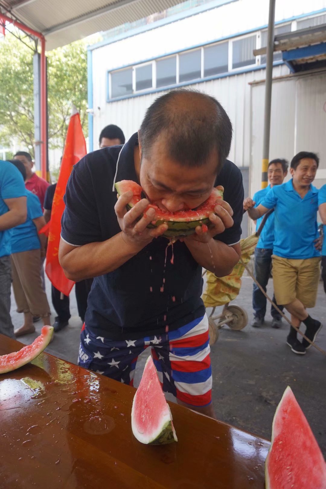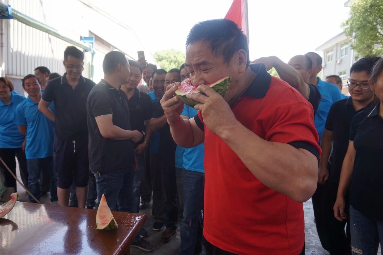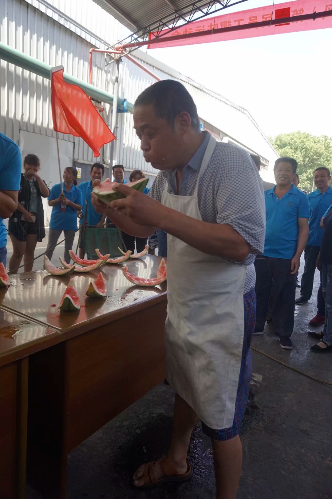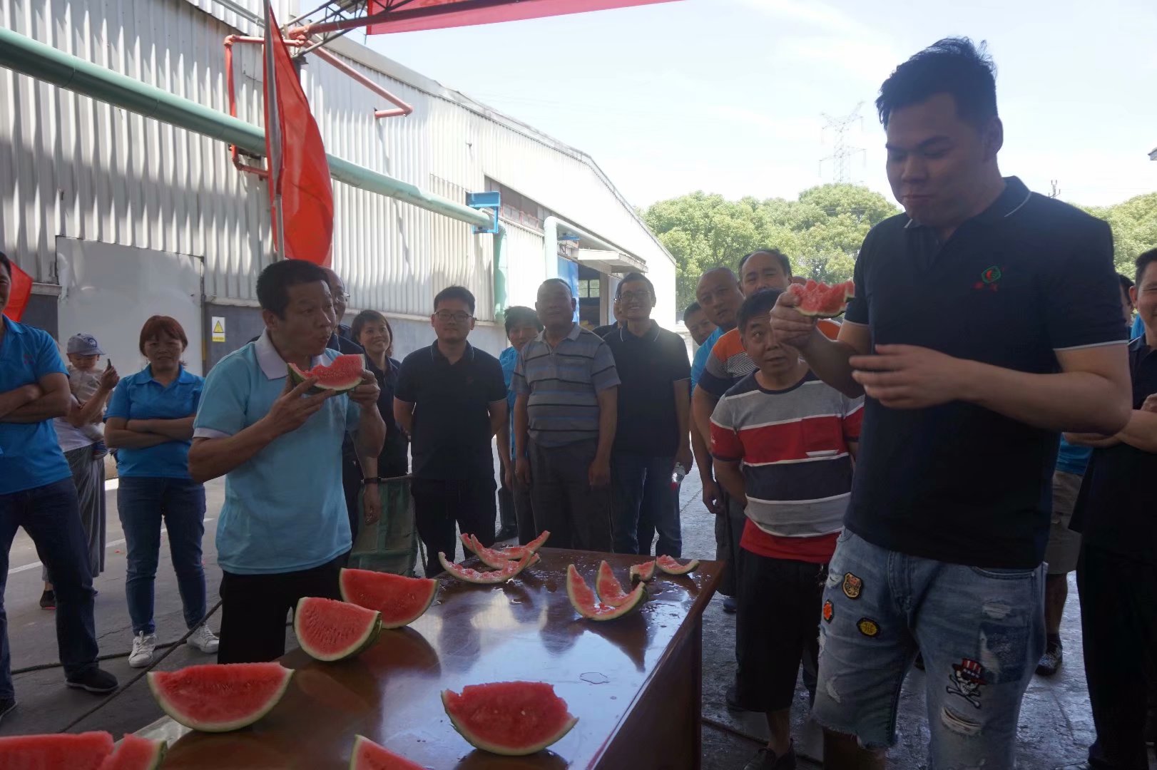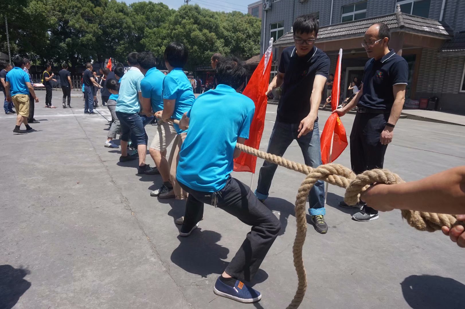 本屆運動會賽期半天,公司員工及管理人員組成了6支參賽隊伍,共一百多名員工及管理人員共同參與財源滾滾、袋鼠接力跳、叉車技能比拼、吃過大比拼及拔河比賽等5個團體比賽。